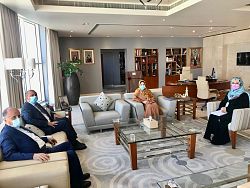 بحث سفير اليمن في مسقط الدكتور خالد بن شطيف اليوم مع وزيرة التعليم العالي والبحث العلمي والابتكار في سلطنة عمان الدكتورة رحمة المحروقية، التعاون بين البلدين في مجال التعليم العالي.