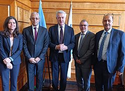بحث نائب وزير الخارجية وشؤون المغتربين، مصطفى نعمان، اليوم، مع المفوض السامي للأمم المتحدة لشؤون اللاجئين، فليبو غراندي، تعزيز الشراكة وقضايا الهجرة والنروح.