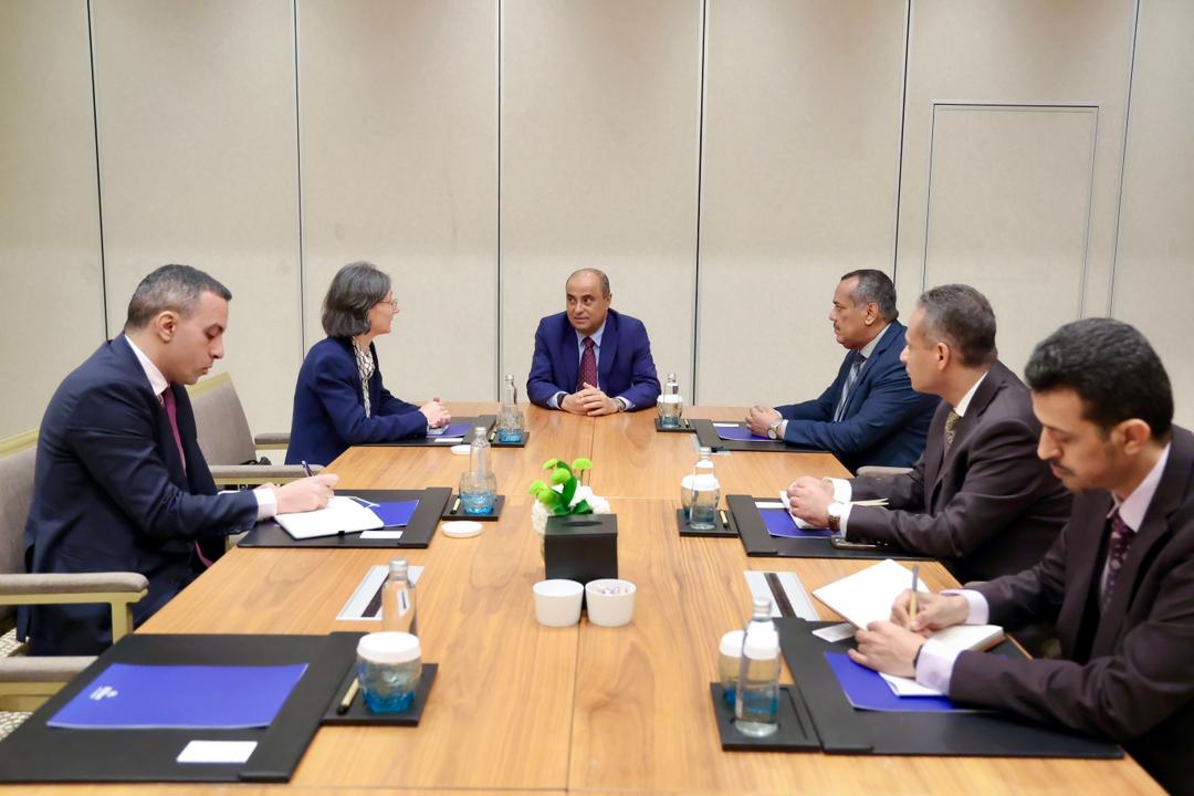 وبحث اللقاء، أوجه التعاون بين البلدين الصديقين، وآفاق الشراكة المستقبلية، وسبل تنسيق الجهود مع الشركاء الدوليين لدعم خطط الحكومة وبرامجها في مجالات التنمية والتعافي الاقتصادي، وبناء المؤسسات، وتنفيذ الإصلاحات الشاملة، إضافة الى مستجدات الأوضاع على الساحة الوطنية والإقليمية والدولية.