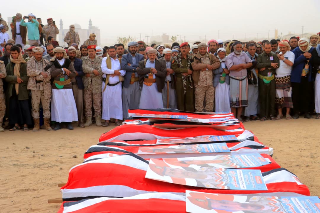 وقد جرت الصلاة على جثمامين الشهداء، من ضباط وضباط الصف والجنود، ثم أُقيمت مراسيم التشييع الرسمية مع حرس الشرف والموسيقى العسكرية، ثم توجه موكب التشييع إلى مقبرة الشهداء بمأرب، لموارة جثامينهم الطاهرة.