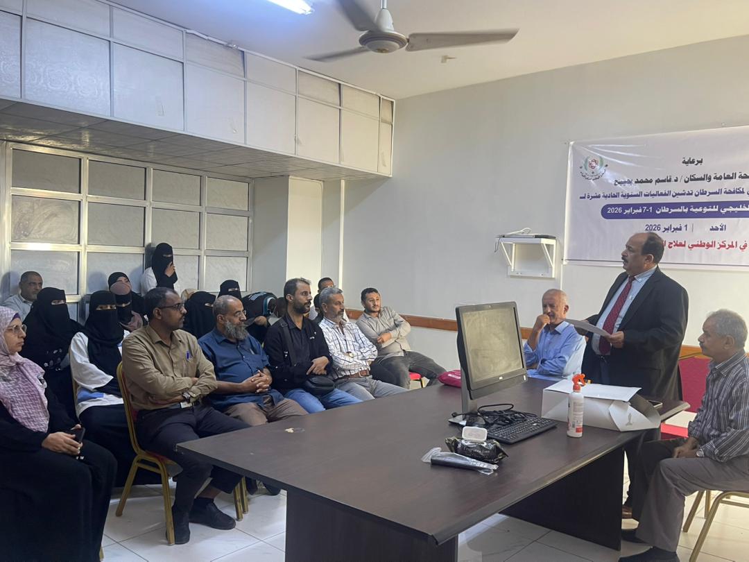 دشّن البرنامج الوطني لمكافحة السرطان، اليوم الأحد، في العاصمة المؤقتة عدن، فعاليات الأسبوع الخليجي الحادي عشر للتوعية بالأمراض السرطانية، الذي ينظمه البرنامج خلال الفترة من الأول وحتى السابع من فبراير 2026م.