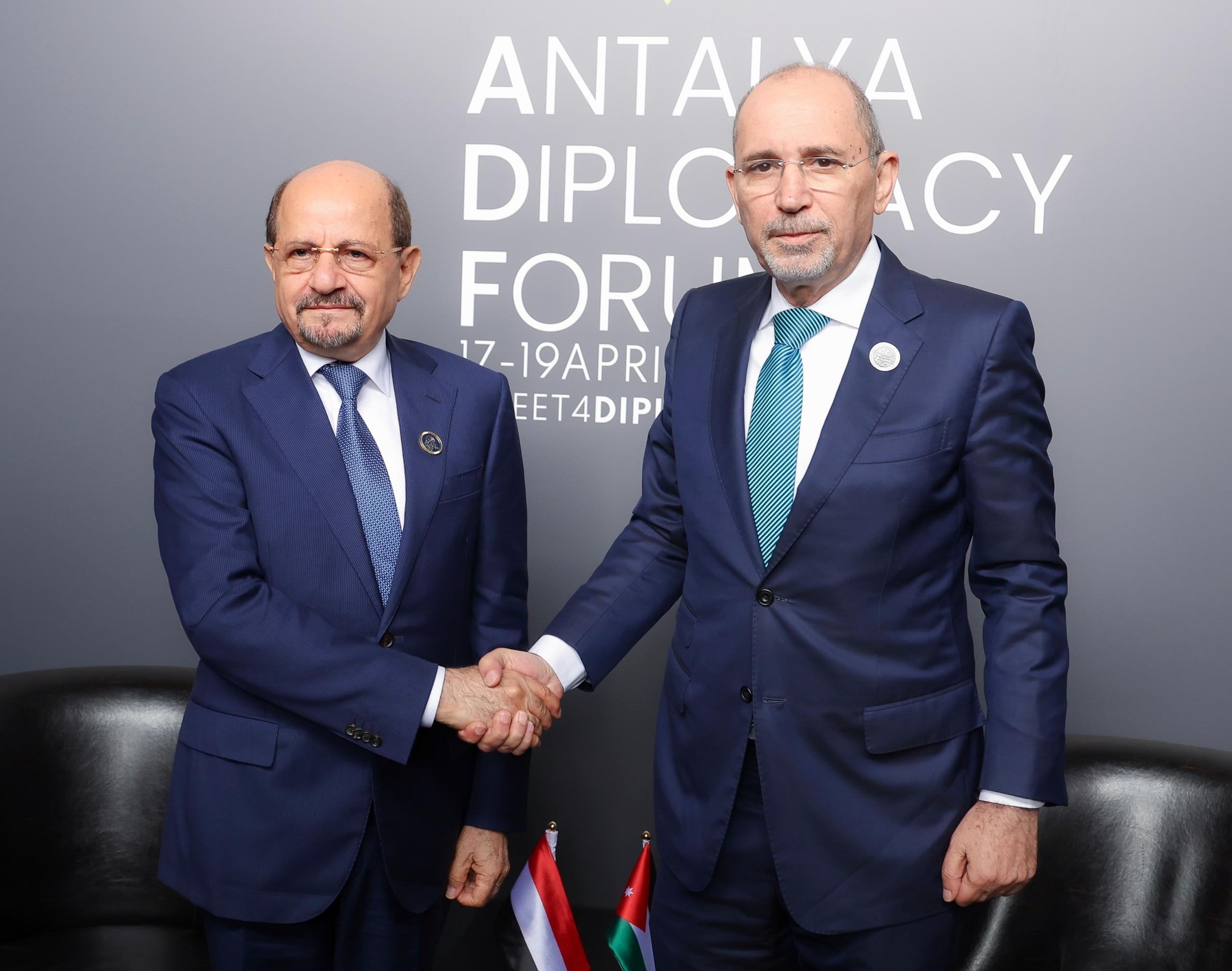 من جانبه، أكد نائب رئيس الوزراء وزير الخارجية الأردني، موقف بلاده الثابت في دعم المجلس الرئاسي والحكومة اليمنية، ودعم أمن واستقرار اليمن..مشيداً بالعلاقات الأخوية الراسخة بين البلدين الشقيقين.