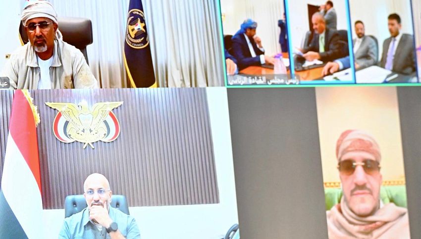 The meeting attended by members, Sultan al-Arada, Abdulrahman al-Muharrami, Dr. Abdullah al-Alimi and via video call Aidaroos al-Zubaidi, Tariq Saleh and Othman Majli, while Council member Faraj al-Bahsani was absent with an excuse.