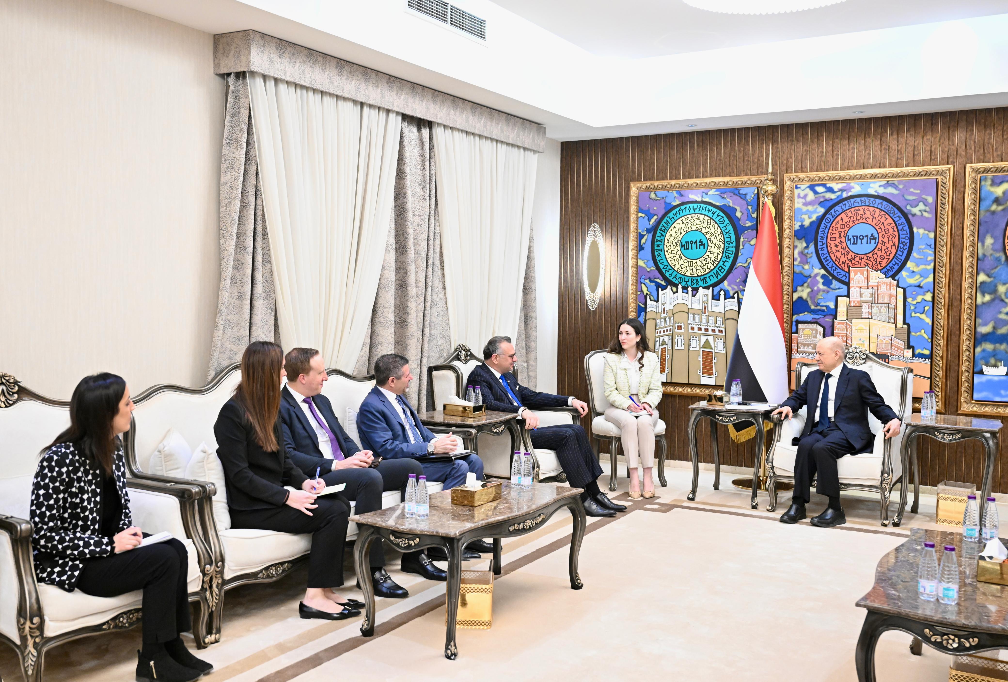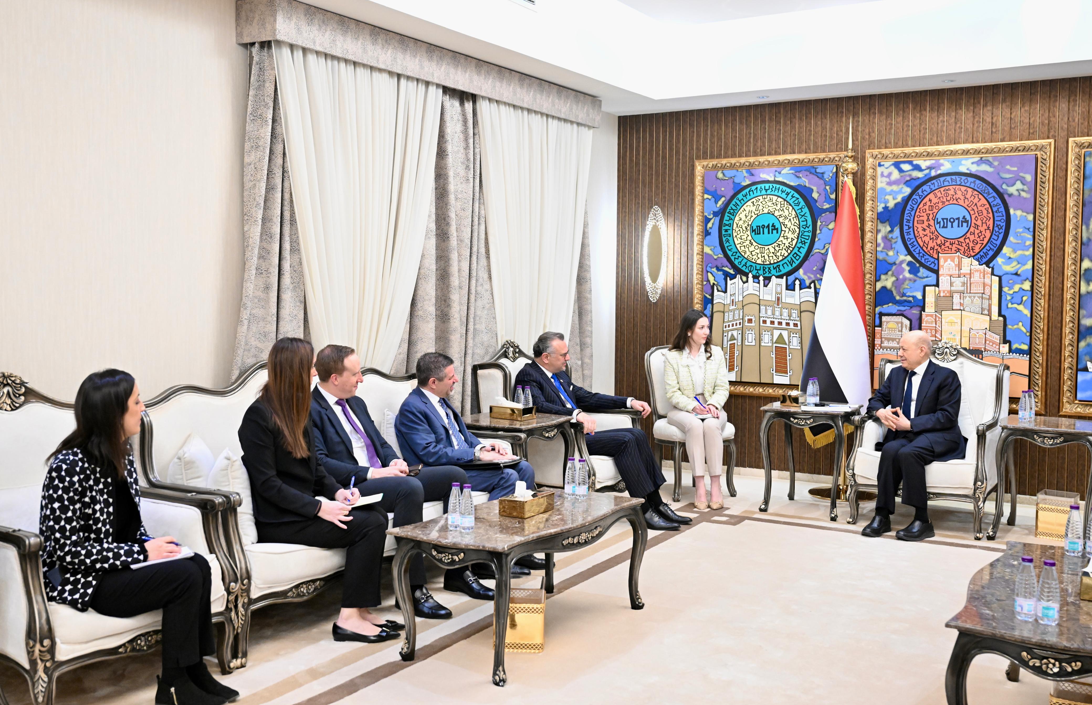 His Excellency President Dr. Rashad Muhammad Al-Alimi, Chairman of the Presidential Leadership Council, received today, Tuesday, the Chief Advisor to the American President for Arab and African Affairs, Massad Boulos and the United States Ambassador to the Republic of Yemen Steven Fagin.