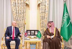 بحث وزير الدفاع السعودي صاحب السمو الملكي الأمير خالد بن سلمان بن عبدالعزيز آل سعود، اليوم، مع وزير الدفاع البريطاني جون هيلي، في الرياض، الشراكة الإستراتيجية الدفاعية بين البلدين الصديقين وفرص تطويرها.