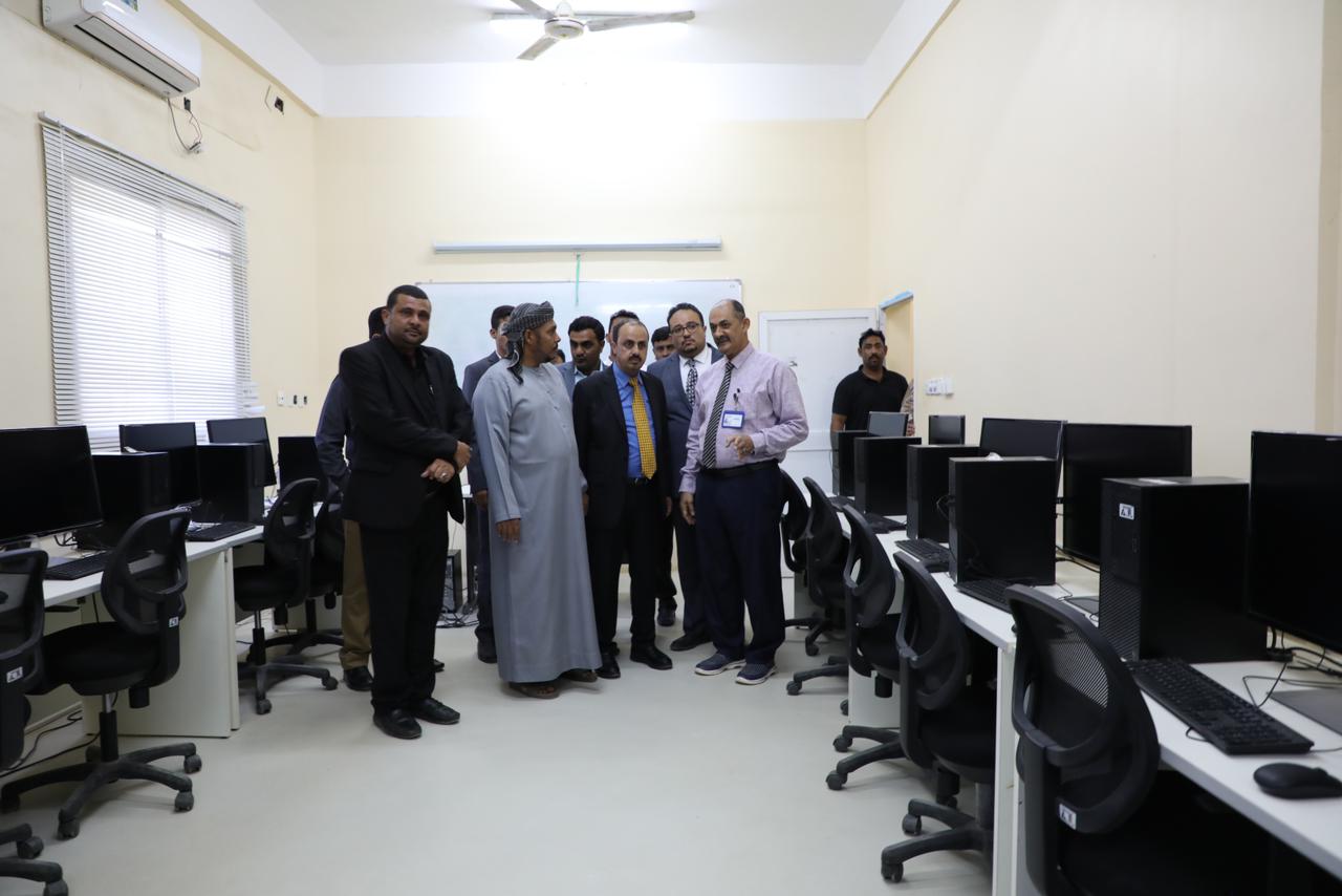 وطاف الوزير والمحافظ بكليات وأقسام الجامعة وقاعاتها التي تضم ثلاث كليات هي كلية الحاسوب، وكلية الإدارة والاقتصاد وكلية الحقوق، إضافة إلى مكتبة ومعمل حاسوب، وتضم كذلك 25 كادر تدريسي وأكاديمي من اليمن ومصر وسوريا والسودان.