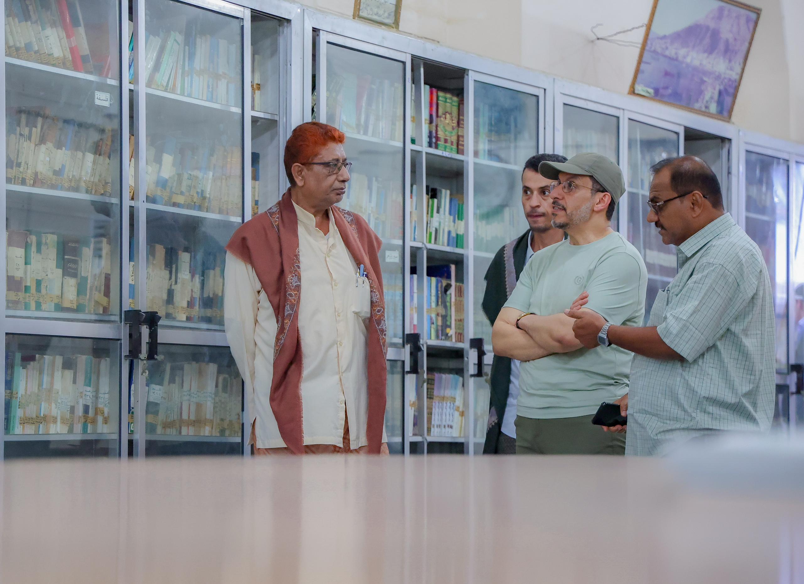 واستمع رئيس الوزراء، الى شرح من مدير عام الهيئة العامة للكتاب بحضرموت عبدالحكيم بن قديم، ومدير المكتبة محمد الحامد، عن الخطط التطويرية للمكتبة للحفاظ عليها كواحدة من المعالم التراثية والثقافية التي تتباهى بها حضرموت، وتطوير خدماتها امام القراء والباحثين.