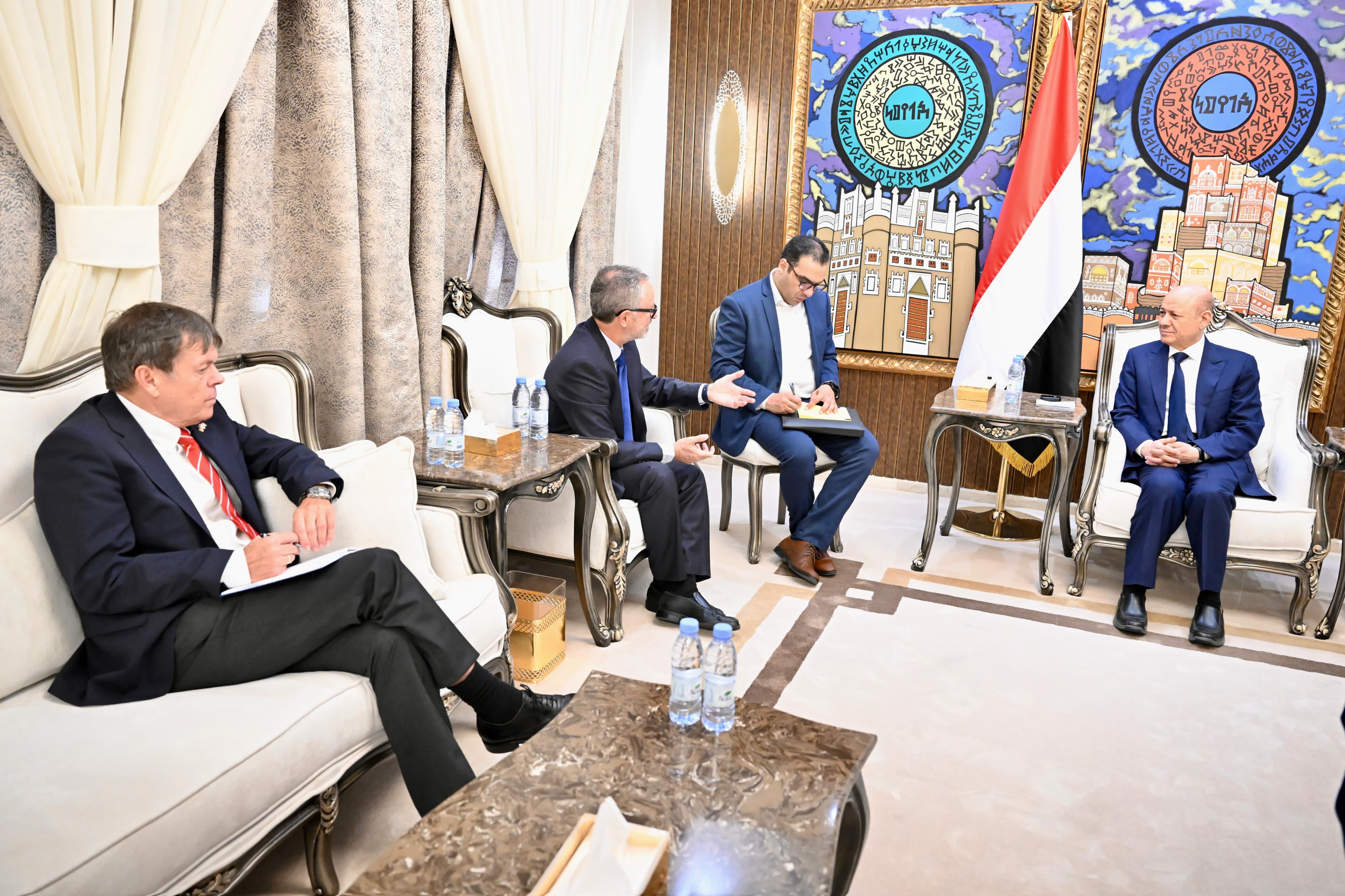 رئيس مجلس القيادة الرئاسي يستقبل رئيس بعثة الاتحاد الاوروبي وسفير جمهورية المانيا الاتحادية