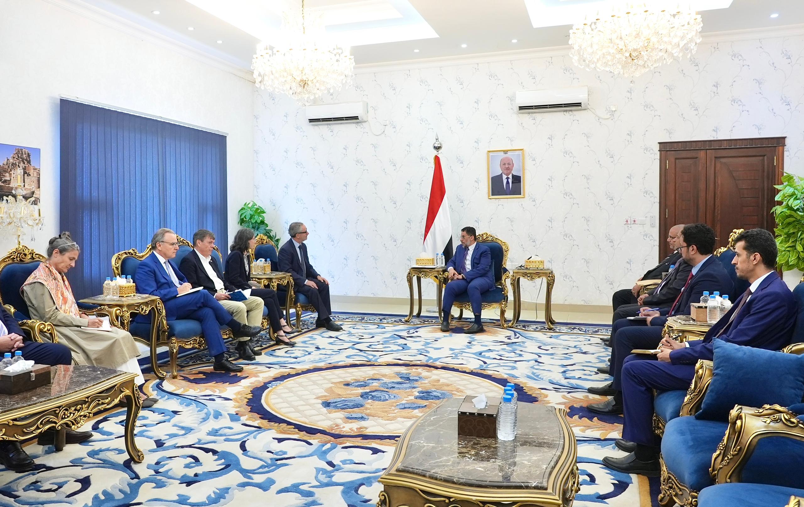 رئيس الوزراء يعقد اجتماع في عدن مع بعثة وسفراء عدد من دول الاتحاد الأوروبي