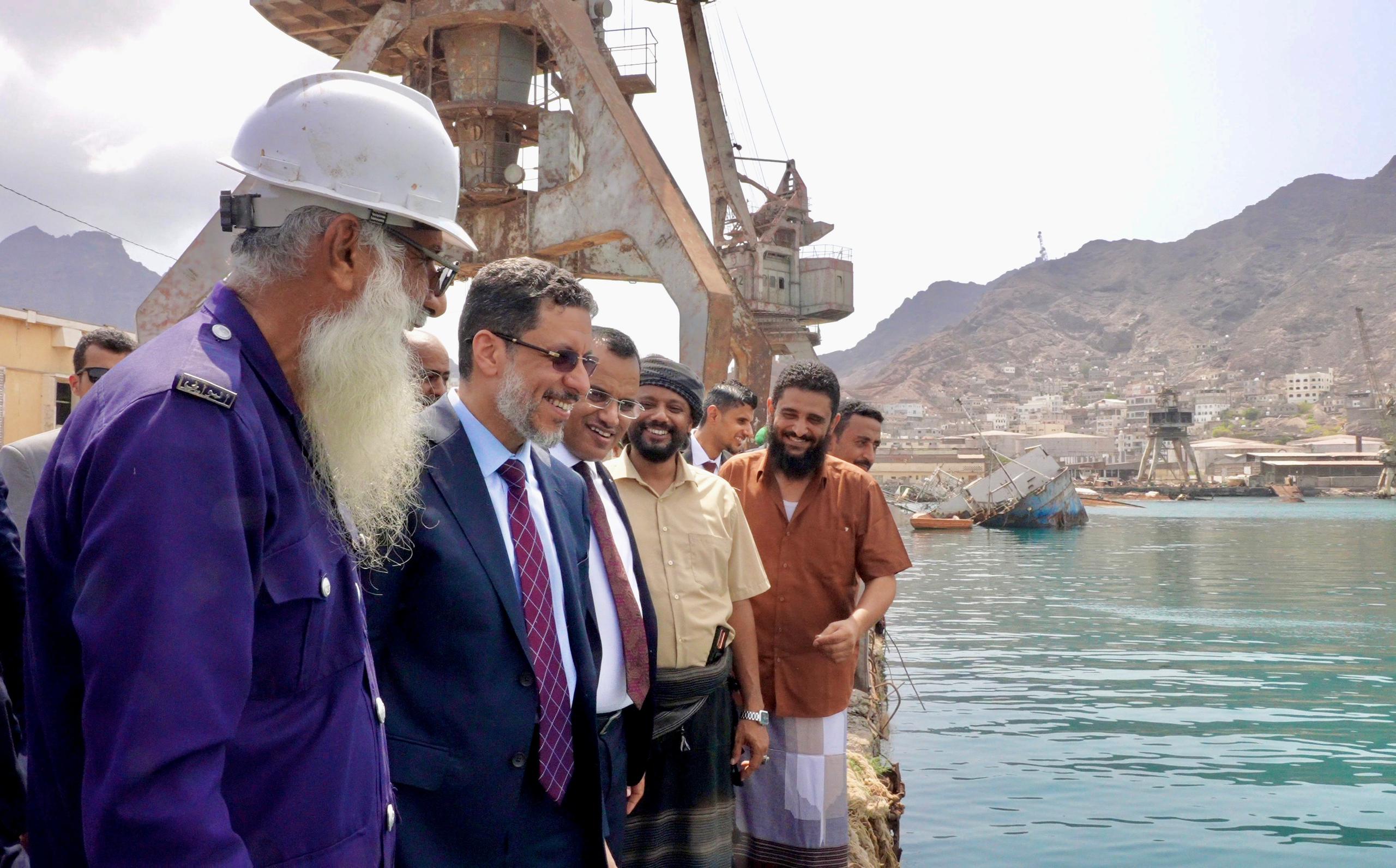 واطلع دولة رئيس الوزراء، من وزير الزراعة والري والثروة السمكية سالم السقطري، وعدد من المسؤولين بالميناء، على الاعمال الجارية في رفع وانتشال السفن الغارقة في الميناء، حيث تم انتشال 10 سفن من اجمالي 22 سفينة، وتصفية حوالي 250 متر طولي من اجمالي 530 متر، والتعاون القائم البرنامج الإنمائي للأمم المتحدة وبدعم الماني في إعادة تأهيل الميناء.