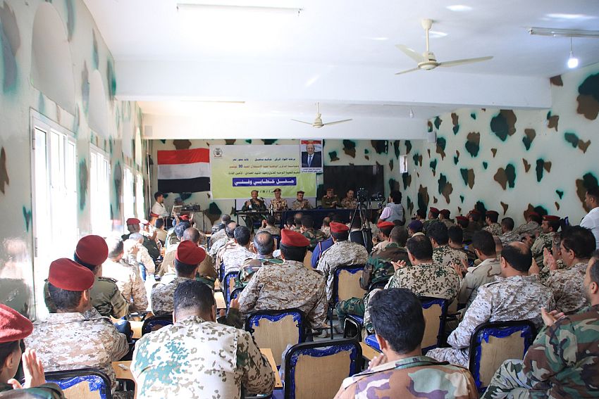 وأشاد اللواء المجيدي، بدور شعبة التوجيه المعنوي، ومعهد الشهيد الحمادي، في تنظيم هذه الفعالية الفنية تخليدًا لهذه المناسبة الوطنية الغالية..داعيًا إلى رصّ الصفوف، وتوحيد الجهود لمواجهة العدو المتمثل بمليشيات الحوثي الإرهابية، واستعادة مؤسسات الدولة، وتحرير كامل التراب الوطني.