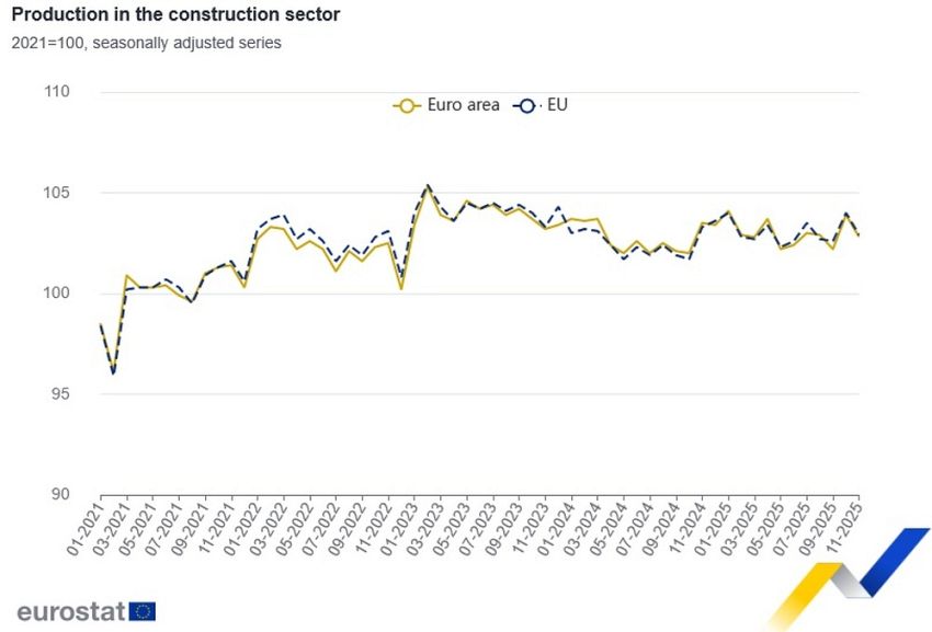 سجلت بلغاريا ثالث أكبر زيادة شهرية في إنتاج قطاع البناء بين دول الاتحاد الأوروبي خلال شهر نوفمبر 2025، وفقًا للتقديرات الأولية الصادرة عن مكتب الإحصاء الأوروبي (يوروستات).