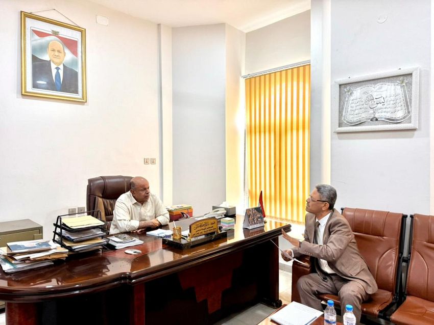محافظ أبين يناقش مع مدير عام الأشغال العامة مشاريع الطرق بالمحافظة