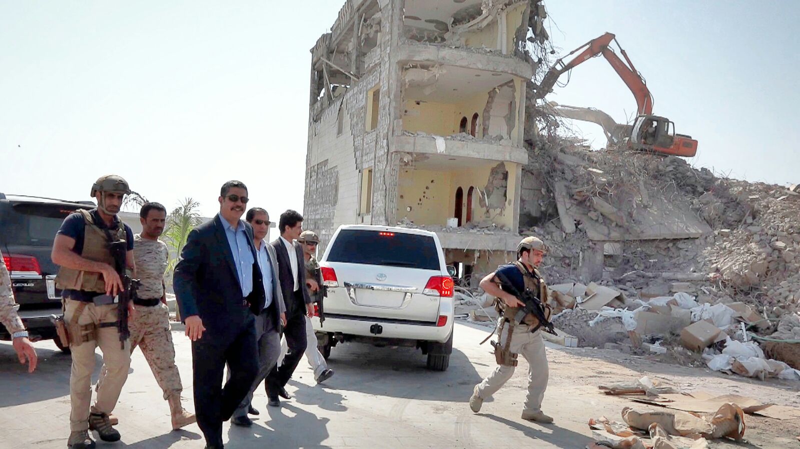 تفقد نائب رئيس الجمهورية رئيس الوزراء خالد بحاح اليوم سير عملية تأهيل وترميم قصر المعاشيق بعدن بعد الاضرار الجسيمة التي تعرض لها بفعل الحرب الظالمة التي شنتها مليشيا الحوثي وصالح الانقلابية على المحافظة.