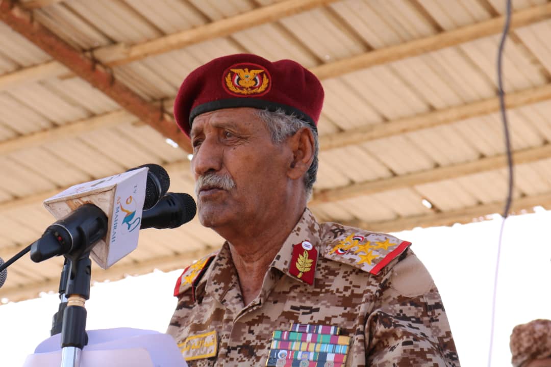 وجدد منصور في الحفل الذي حضره الامين العام للمجلس المحلي للمحافظة سالم نيمر ووكلاء المحافظة مختار بن عويّض ومحمد صداعي وبدر سالم كلشات والعقيد مفتي سهل ومدير عام الشرطة وعدد من القيادات العسكرية والضباط وقيادات الوحدات الأمنية بالمحافظة،العهد والولاء للقيادة السياسية والعسكرية..مؤكداً ان القوات المسلحة والأمن ستظل الصخرة التي تتحطم عليها كل مؤامرات ومكائد الأعداء.
