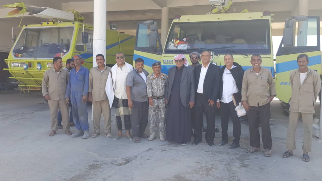 رئيس هيئة الطيران يطلع على اعمال الصيانة لعربات الاطفاء بمطار سيئون