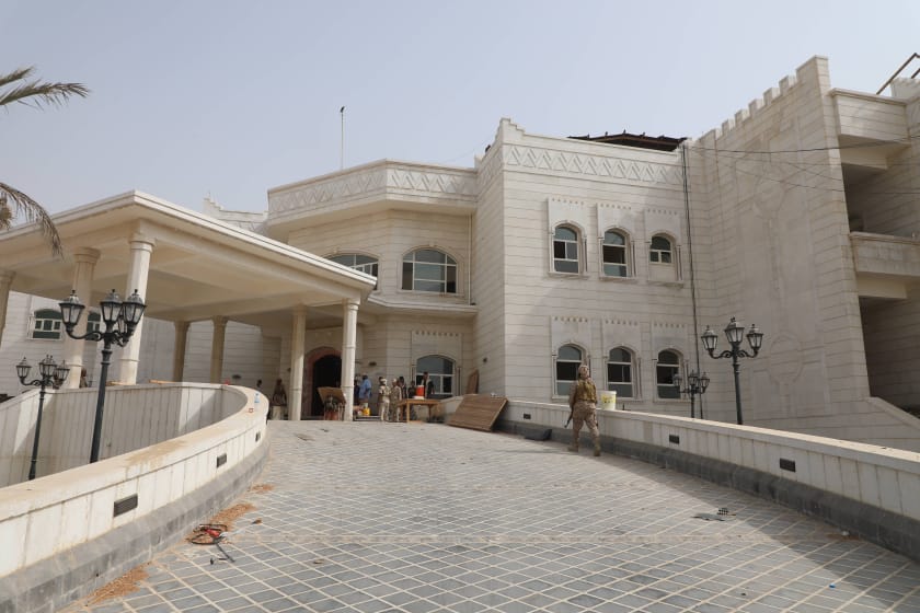 وطاف البحسني ومرافقوه بمكونات القصر الجمهوري..مستمعاً من المقاول المنفذ للمشروع إلى شرحٍ حول ما تم إنجازه من أعمال وما تبقى من أعمال لاستكمال عملية التأهيل للقصر، وأعمال الترميم في مبنى دار الضيافة والتي شملت ترميم التشققات وإصلاحها، وتأهيل المبنى وتجهيزه بكل المستلزمات..مشدداً على رفع وتيرة العمل والتسريع في عملية الإنجاز لكافة أعمال التأهيل والترميم وفقًا للمواصفات الفنية والفترة الزمنية المحددة المتفق عليها، وتجهيز القصر الجمهوري ومبنى دار الضيافة بكافة الاحتياجات والمستلزمات.