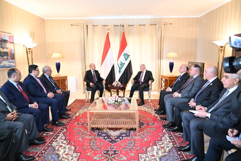 رئيس مجلس القيادة الرئاسي يبحث والرئيس العراقي العلاقات الثنائية بين البلدين