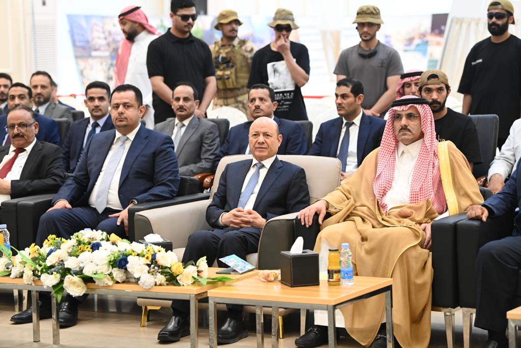 بعد ذلك شهد رئيس مجلس القيادة الرئاسي، بحضور رئيس مجلس الوزراء الدكتور معين عبدالملك والسفير السعودي لدى اليمن محمد آل جابر حفل تدشين المشاريع السعودية في اليمن ضمن 229 مشروعا ومبادرة تنموية في انحاء البلاد.