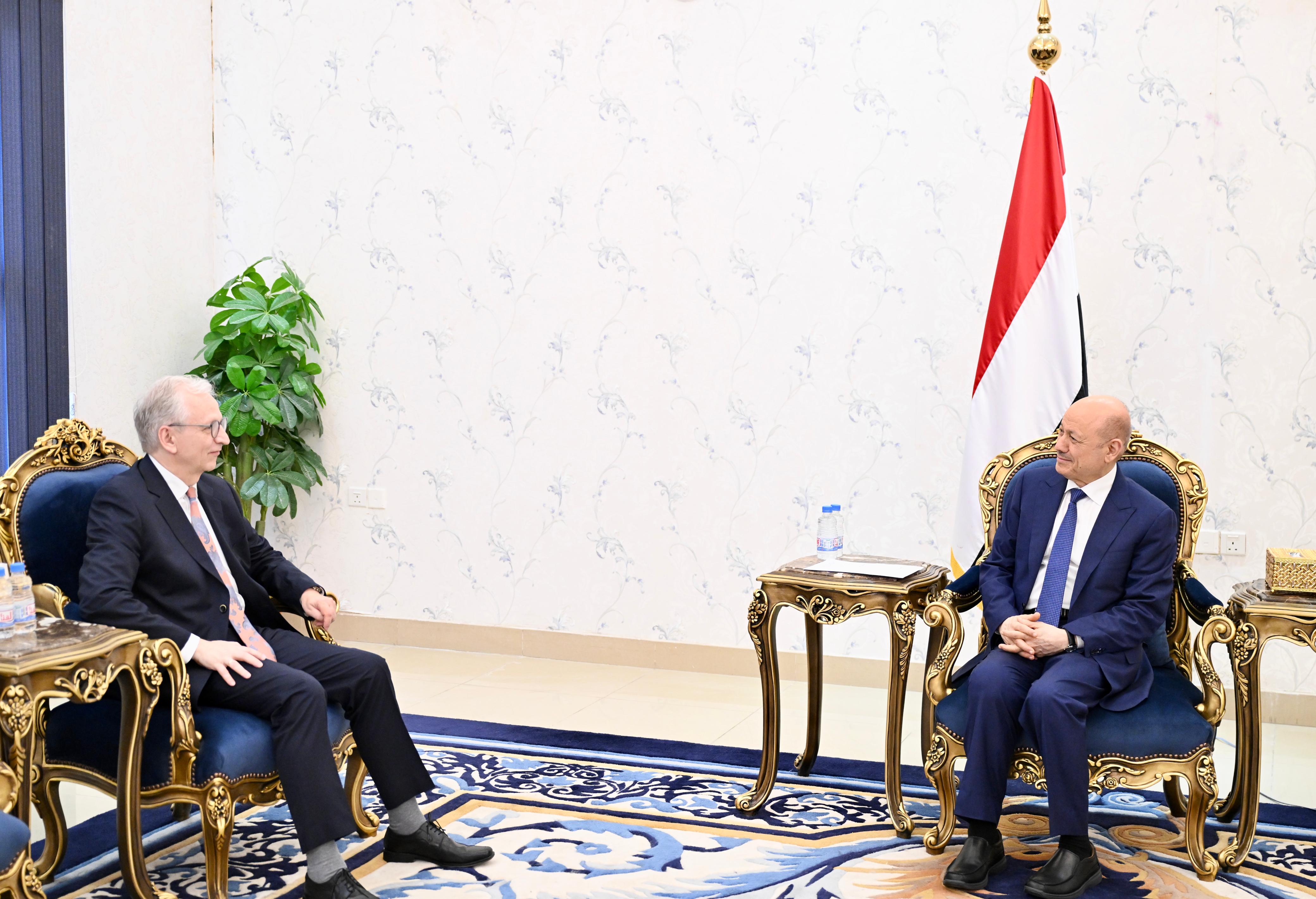 His Excellency President Dr. Rashad al-Alimi, Chairman of the Presidential Leadership Council (PLC) received today, Wednesday, at Ma'shiq Palace in the temporary capital Aden, the Ambassador of the Federal Republic of Germany to Yemen Thomas Friedrich.