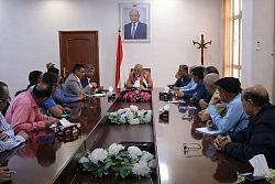 The Governor of Taiz Governorate Nabil Shamsan discussed Thursday with the Director of the World Food Programme (WFP) Office in the governorate Mohammed Akhlaq Rahmani the mechanism for approving and distributing food baskets, in light of the reduction in the number of beneficiaries due to the decline in humanitarian funding.