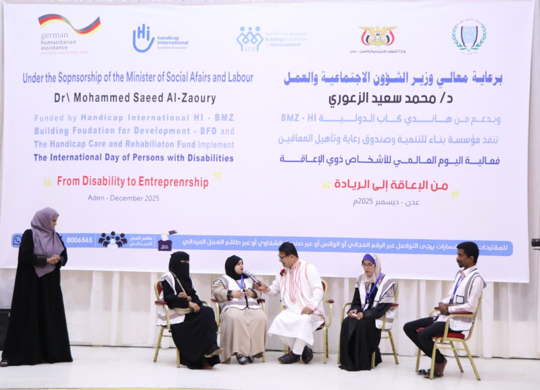 نظمت مؤسسة بناء للتنمية بالتعاون مع صندوق رعاية وتأهيل المعاقين، اليوم، بالعاصمة المؤقتة عدن، فعالية اليوم العالمي للأشخاص ذوي الاحتياجات الخاصة، تحت شعار (من الإعاقة إلى الريادة).