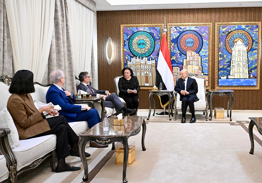 استقبل فخامة الرئيس الدكتور رشاد محمد العليمي، رئيس مجلس القيادة الرئاسي، اليوم الاثنين، امين عام وزارة الدفاع الألمانية، نيس بولتر، ومعه سفير جمهورية ألمانيا الاتحادية لدى اليمن، توماس شنايدر.