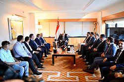Chairman of the Presidential Leadership Council Dr.Rashad al-Alimi, along with Council members Major General Aidaroos al-Zubaidi and Dr. Abdullah al-Alimi, met Friday with the Under-Secretary-General of the United Nations for Humanitarian Affairs and Emergency Relief Coordinator Tom Fletcher on the sidelines of the meetings of the eightieth session of the United Nations General Assembly.