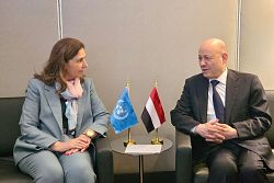 Chairman of the Presidential Leadership Council Dr. Rashad al-Alimi, along with Council members Major General Aidaroos al-Zubaidi and Dr. Abdullah al-Alimi, met Tuesday with President Ahmed Al-Sharaa of the Syrian Arab Republic on the sidelines of the United Nations General Assembly meetings.