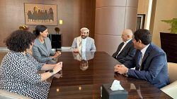 His Excellency President Dr. Rashad al-Alimi, Chairman of the Presidential Leadership Council (PLC) along with Council's Members Maj. General Aidaroos al-Zubaidi and Dr. Abdullah al-Alimi received today, Thursday, here the Acting Executive Director of the United Nations Development Program (UNDP) Haoliang Xu, on the sidelines of the 80th Session of the United Nations (UN) General Assembly.