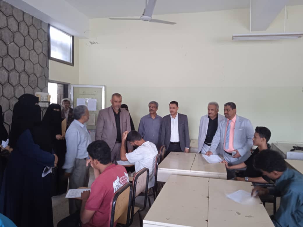 واطلع المحولي، ومعه مدير مكتب التعليم الفني بعدن، محمد الشكلية، على سير العملية الامتحانية، ومستوى التجهيزات الفنية المتخذة لضمان أداء الطلاب لاختباراتهم بكل سهولة ويسر.