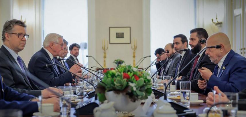 بحث الرئيس الألماني فرانك فالتر شتاينماير، اليوم، مع نظيره السوري أحمد الشرع، الذي يزور العاصمة "برلين" حاليا، سبل تعزيز العلاقات بين البلدين في مختلف المجالات.