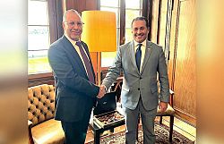 Minister of Industry and Trade, Mohammed Al-Ashwal, met with the Chairman of the General Council of the World Trade Organization (WTO), Ambassador Saqr Al-Moqbel, on the sidelines of the 12th International Conference of the United Nations Conference on Trade and Development (UNCTAD) in Geneva.