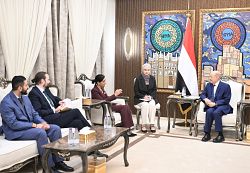 His Excellency Dr. Rashad Mohammed al-Alimi, the Chairman of the Presidential Leadership Council, along with Council member Dr. Abdullah al-Alimi, received Monday the Ambassador of the United Kingdom to Yemen, Abda Sharif.