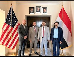 Deputy Director of the Immigration, Passports and Nationality Authority Maj. General Abdul Jabbar Salem discussed today, Monday, with the Political Attaché Houston Hars and the Security Attaché David Shott at the U.S. Embassy in the Republic of Yemen ways to further boost joint cooperation and security and administrative development.