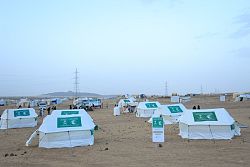King Salman Humanitarian Aid and Relief Center (KSrelief) launched Friday the distribution of 200 shelter tents and 300 shelter kits to displaced families affected by the recent weather depression in Marib Governorate.