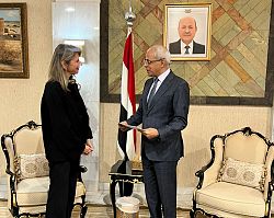 The Vice Minister of Foreign Affairs and Expatriates Mostafa Noaman received today, Tuesday, a copy of the credentials of the Ambassador of the Republic of Greece to the Republic of Yemen Katerina Farvigo.