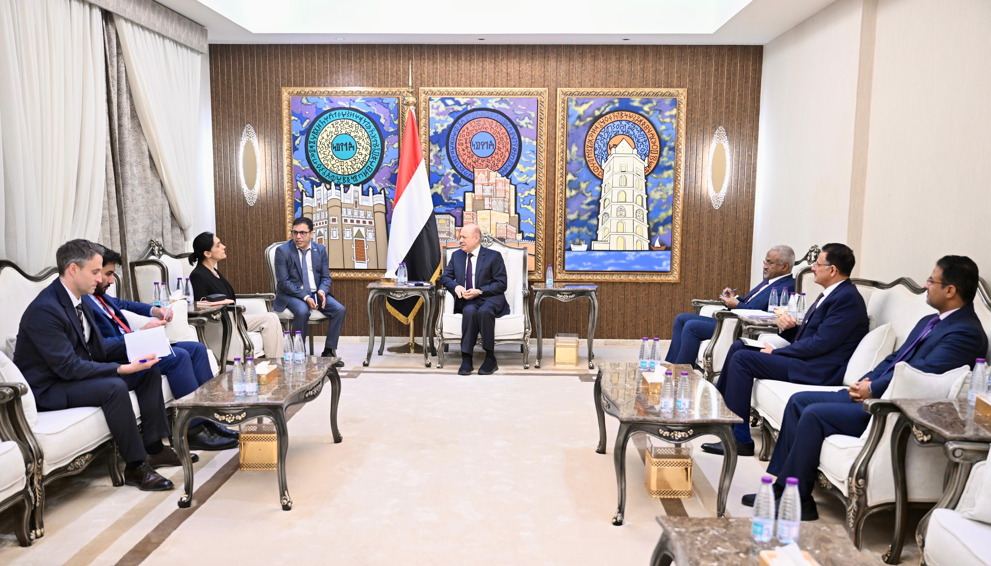 استقبل فخامة الرئيس الدكتور رشاد محمد العليمي، رئيس مجلس القيادة الرئاسي، اليوم الخميس، سفيرة المملكة المتحدة لدى اليمن، عبده شريف.