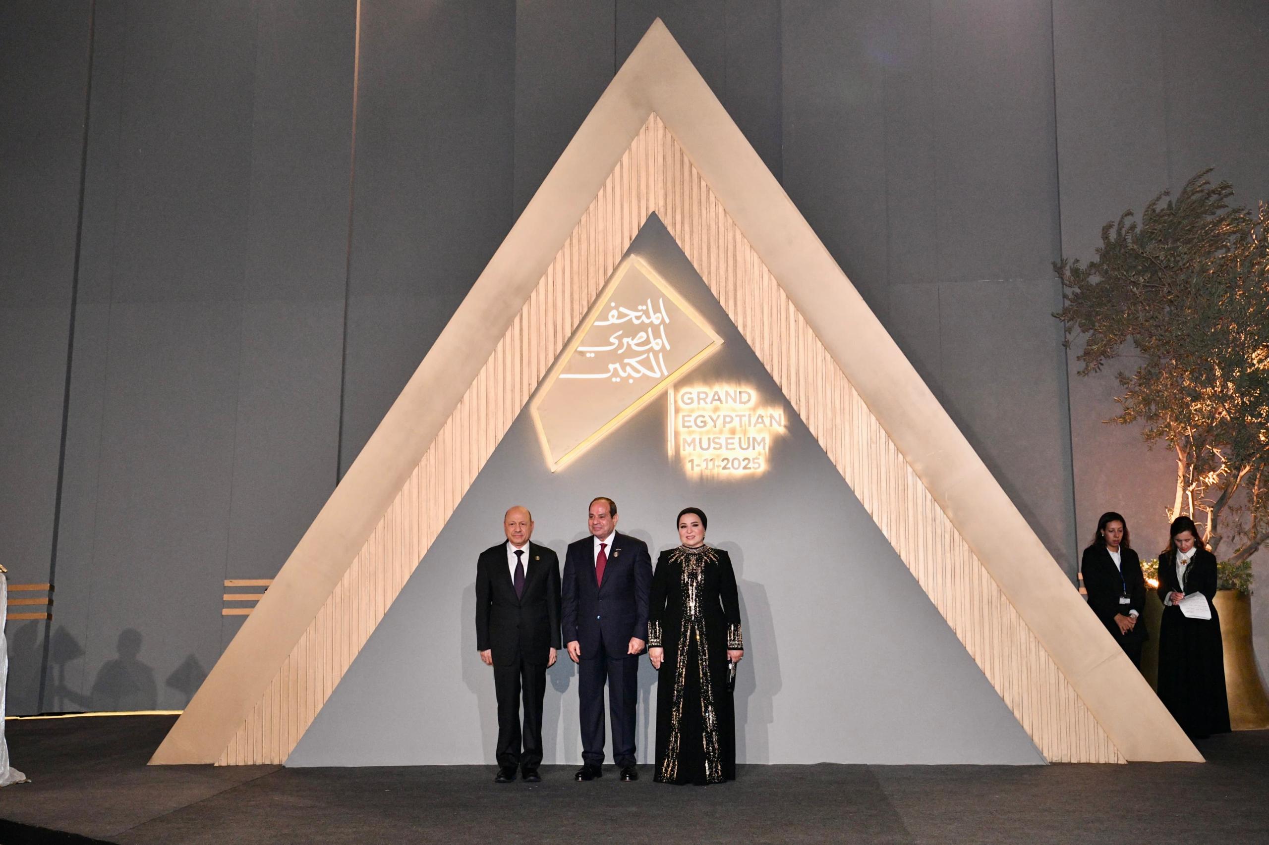 وأشاد رئيس مجلس القيادة الرئاسي بهذا الإنجاز الفريد، الذي يمزج بين عظمة التاريخ المصري القديم، وروعة الإبداع المعاصر لتحفة معمارية، وثقافية عامرة، على ضفاف اهرامات الجيزة الخالدة، التي تعرض للعالم سردية حضارية تمتد لآلاف السنين.