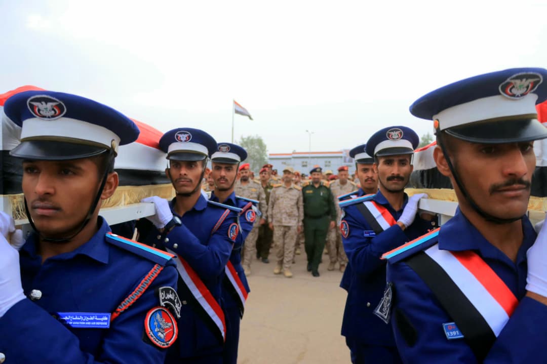 وقد جرت الصلاة على جثمامين الشهداء، من ضباط وضباط الصف والجنود، ثم أُقيمت مراسيم التشييع الرسمية مع حرس الشرف والموسيقى العسكرية، ثم توجه موكب التشييع إلى مقبرة الشهداء بمأرب، لموارة جثامينهم الطاهرة.