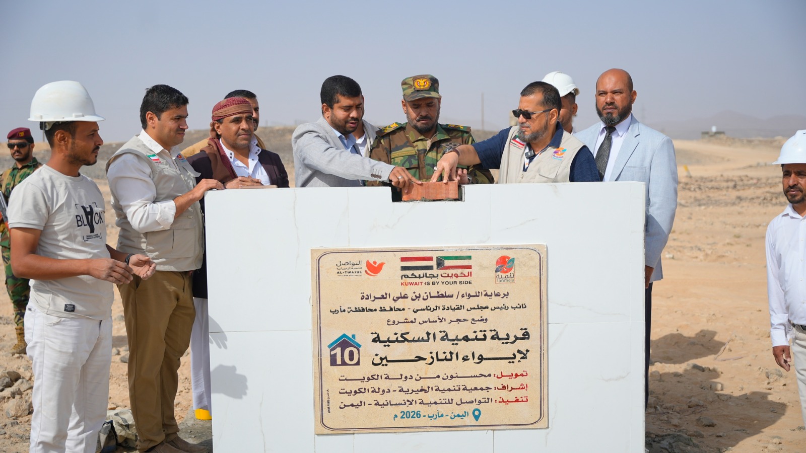 وضع وكيل محافظة مأرب لشؤون الدفاع والأمن، اللواء ناصر رقيب، اليوم، في منطقة الميل شمال عاصمة المحافظة، حجر الاساس لإنشاء قرية تنمية السكنية لإيواء النازحين، والتي تضم50 وحدة سكنية، ومشروع مياه ومدرسة، ووحدة صحية، ومسجد، تنفذها مؤسسة التواصل للتنمية الانسانية، بتمويل جمعية تنمية الخيرية الكويتية ضمن حملة (الكويت الى جانبكم).