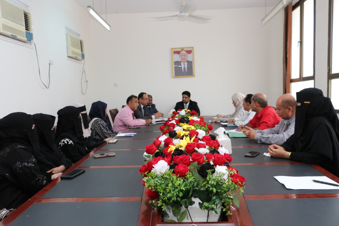 الخنبشي يناقش اوضاع المخزون الاستراتيجي للمواد الغذائية وسير العمل في القطاع الصحي وميناء المكلا