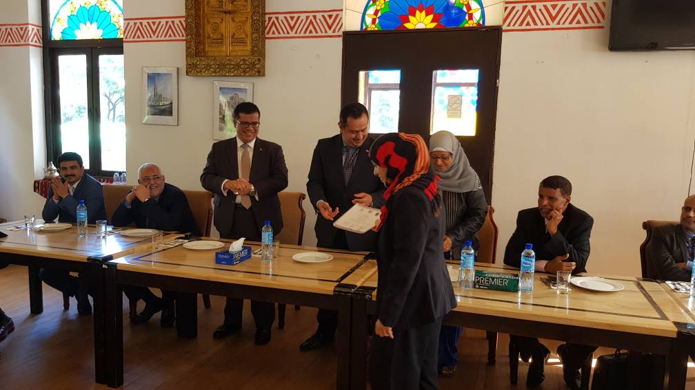 وكرم وزير الاشغال العامة والطرق ومعه السفير باحميد المشاركين في المنتدى بشهادات تقديرية نظير مشاركتهم الفاعلة في المنتدى.