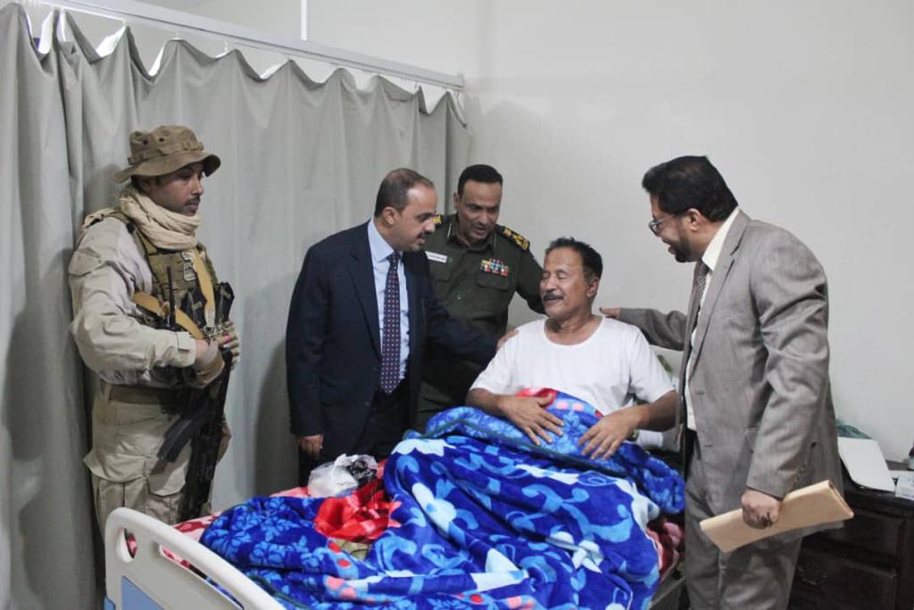 اطمأن وزير الإعلام والثقافة والسياحة معمر الإرياني، اليوم، على صحة جرحى العمل الإرهابي الذي استهدف مطار عدن الدولي اثناء وصول الحكومة والذي راح ضحيته العشرات من الشهداء والجرحى وتسبب في اضرار مادية جسيمة في المطار.