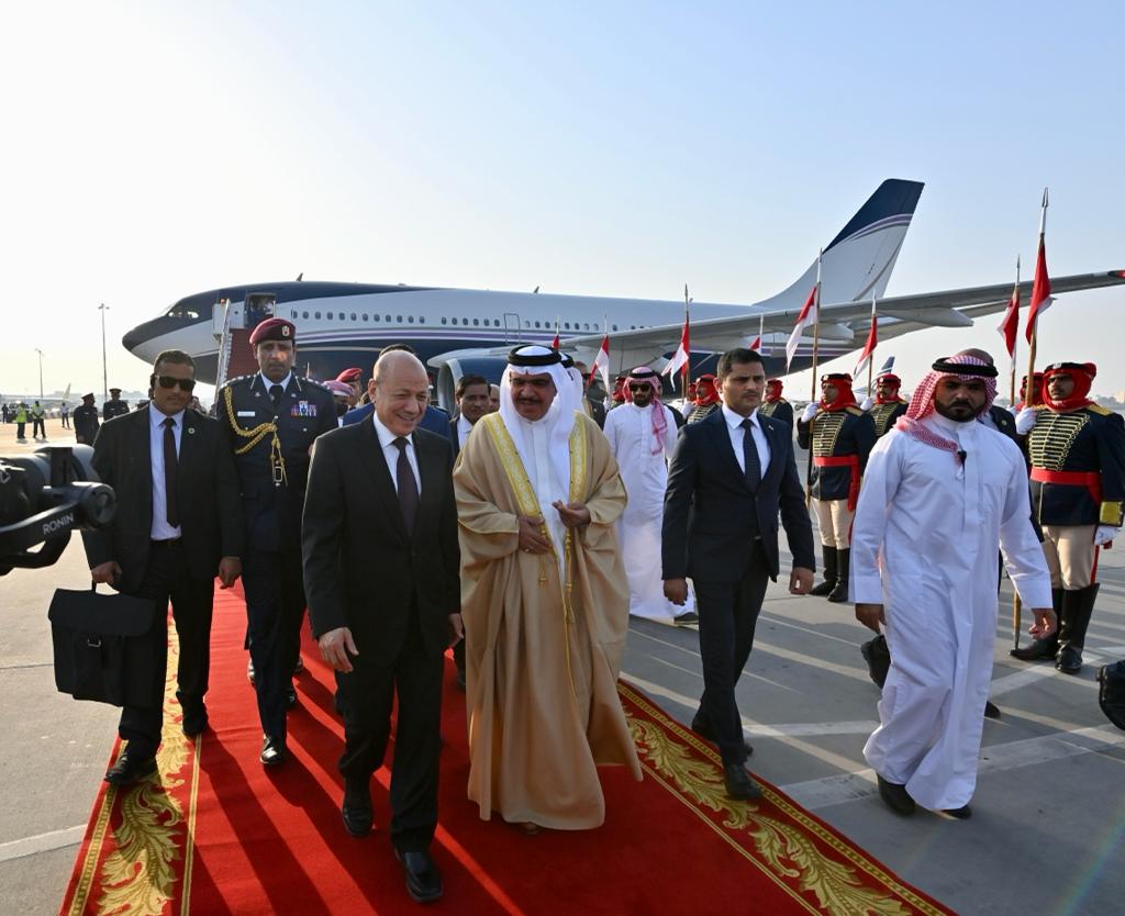 رئيس مجلس القيادة يصل البحرين في ثاني محطات جولته الخارجية