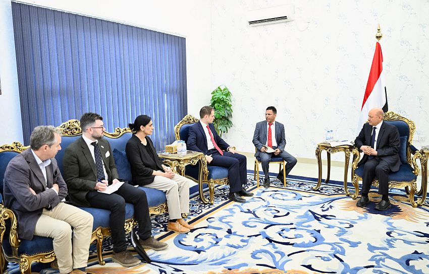 His Excellency President Dr. Rashad al-Alimi, the Chairman of the Presidential Leadership Council, received Tuesday, along with Council member Dr. Abdullah al-Alimi at Maasheeq Palace UK Minister of State for Middle East and North Africa Affairs Hamesh Falukner, in the first visit by a British minister in nearly seven years.