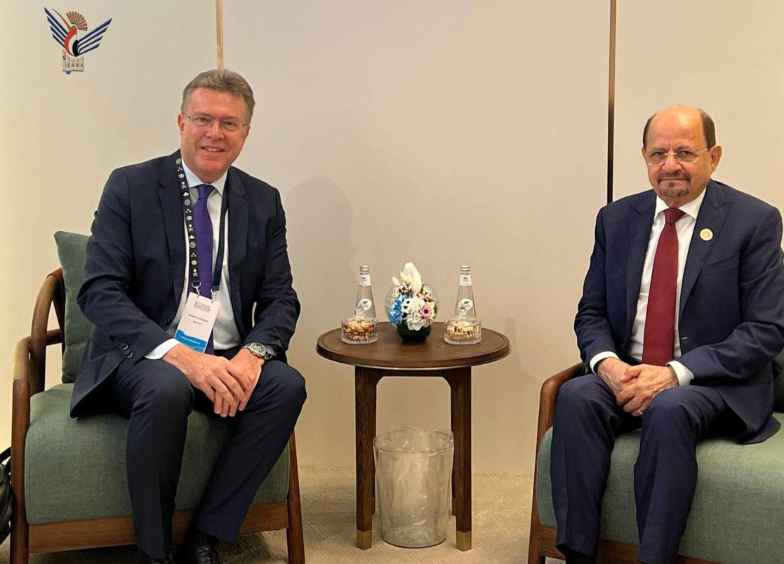 The Minister of Foreign Affairs and Expatriate Dr. Shaya Zindani met today, Sunday, with the Special Envoy of the Republic of Austria to promote its candidacy for a non-permanent seat on the Security Council and the Vice Chair of the Austrian Association for Foreign Policy and the United Nations Herbert Scheibner.