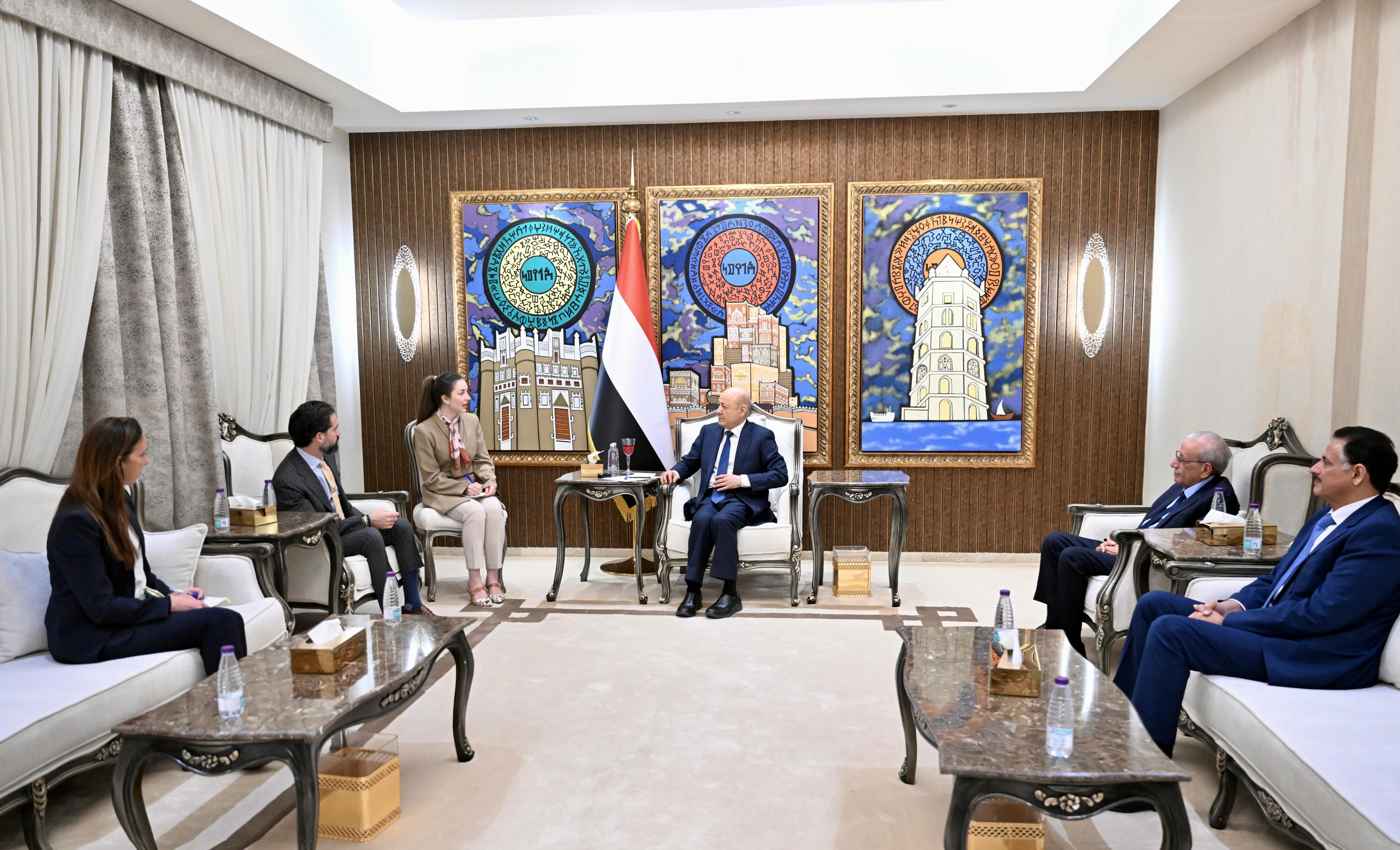 His Excellency President Dr. al-Alimi, Chairman of the Presidential Leadership Council (PLC) received today, Tuesday, the Chargé d' Affaires of the United States Embassy in the Republic of Yemen Jonathan Pecha.